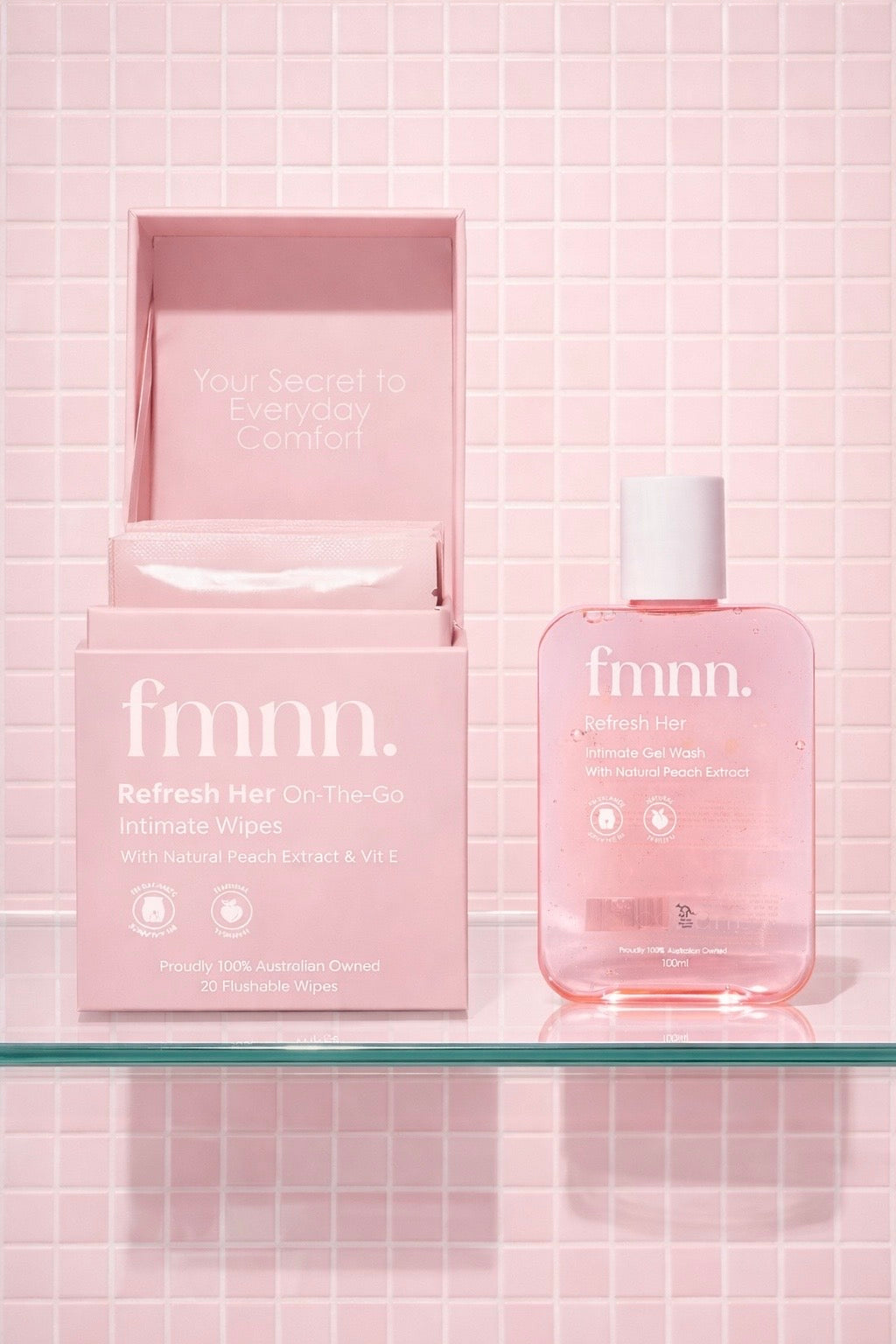 The Her On-The-Go Duo pairs our gentle intimate gel wash with our convenient on-the-go wipes, designed to support your natural balance without irritation.